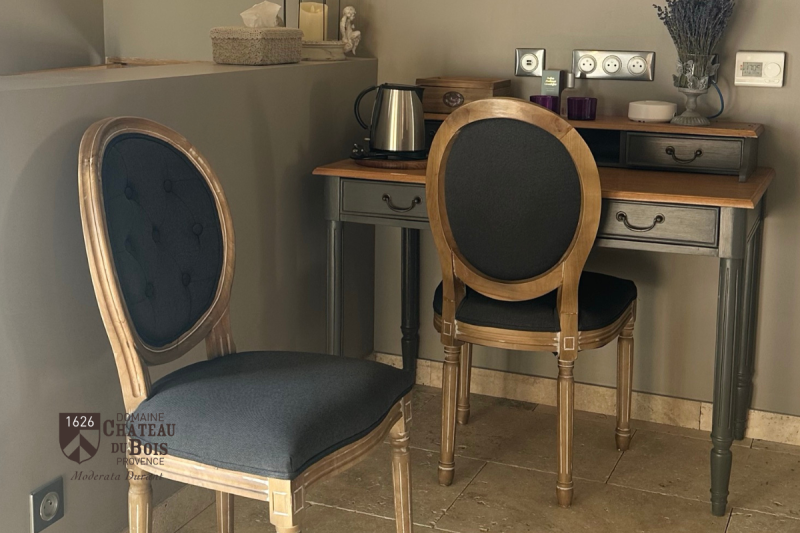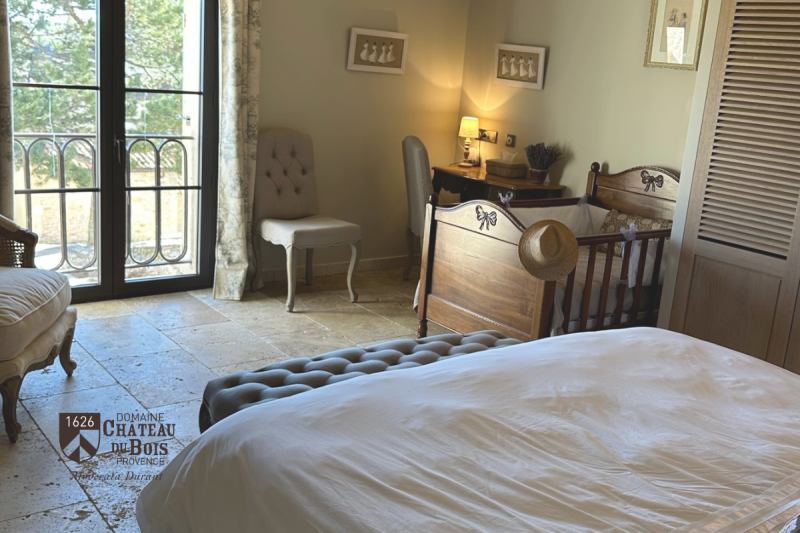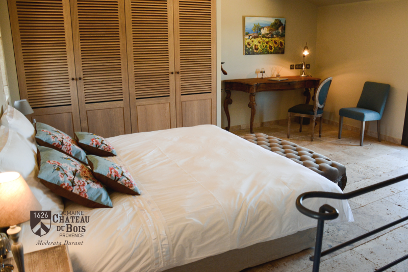 Situé au cœur du Luberon, à deux pas du Musée de la Lavande, le Domaine Château du Bois propose une location de chambres d'hôtes avec piscine en Provence au sein d'un domaine privé de 400 hectares entouré de vastes champs de lavande cultivés en agriculture biologique, où le parfum des fleurs, le calme de la campagne et la douceur du climat provençal constituent le cadre quotidien des hôtes qui viennent s'y ressourcer loin de tout vis-à-vis et de toute nuisance sonore.