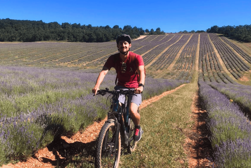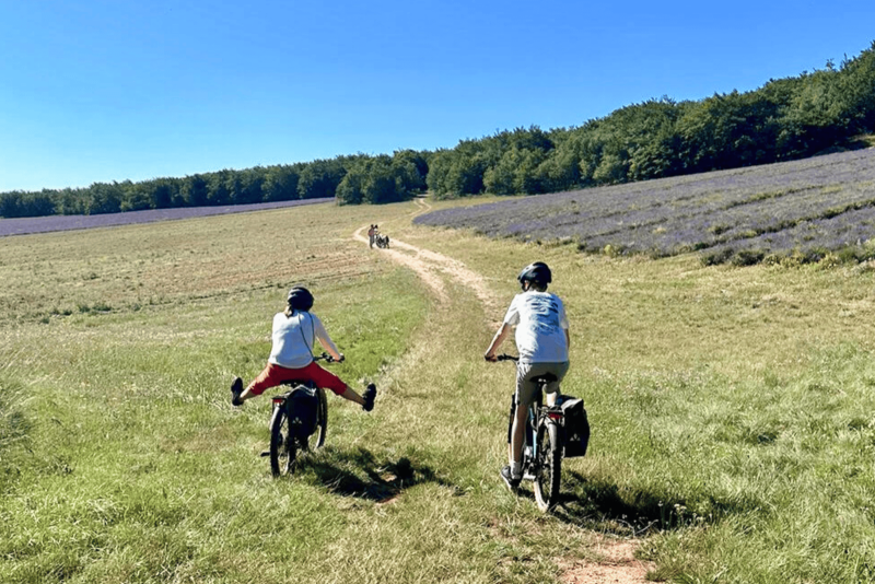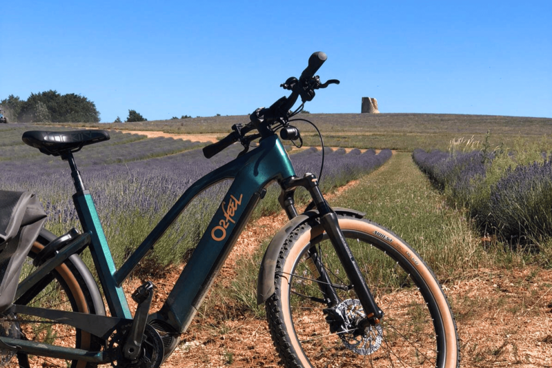 Le Domaine Château du Bois met à disposition de ses hôtes quatre vélos à assistance électrique confortables et performants, qui permettent d'explorer librement et sans effort les 400 hectares du domaine privé à Lagarde d'Apt, en empruntant les chemins qui traversent les parcelles de lavande fine cultivée à haute altitude, les bois paisibles et les landes sauvages qui composent ce lieu de vacances en Provence.